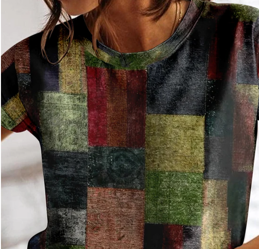 SPAREN SIE €22Anja - Sommer kariertes T-Shirt für Frauen O-Ausschnitt