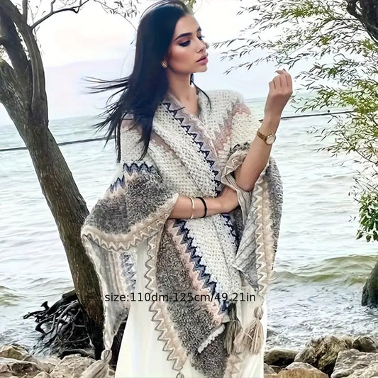 Arlo | Vintage Wavy Striped Knitted Scarf Tassel Vest