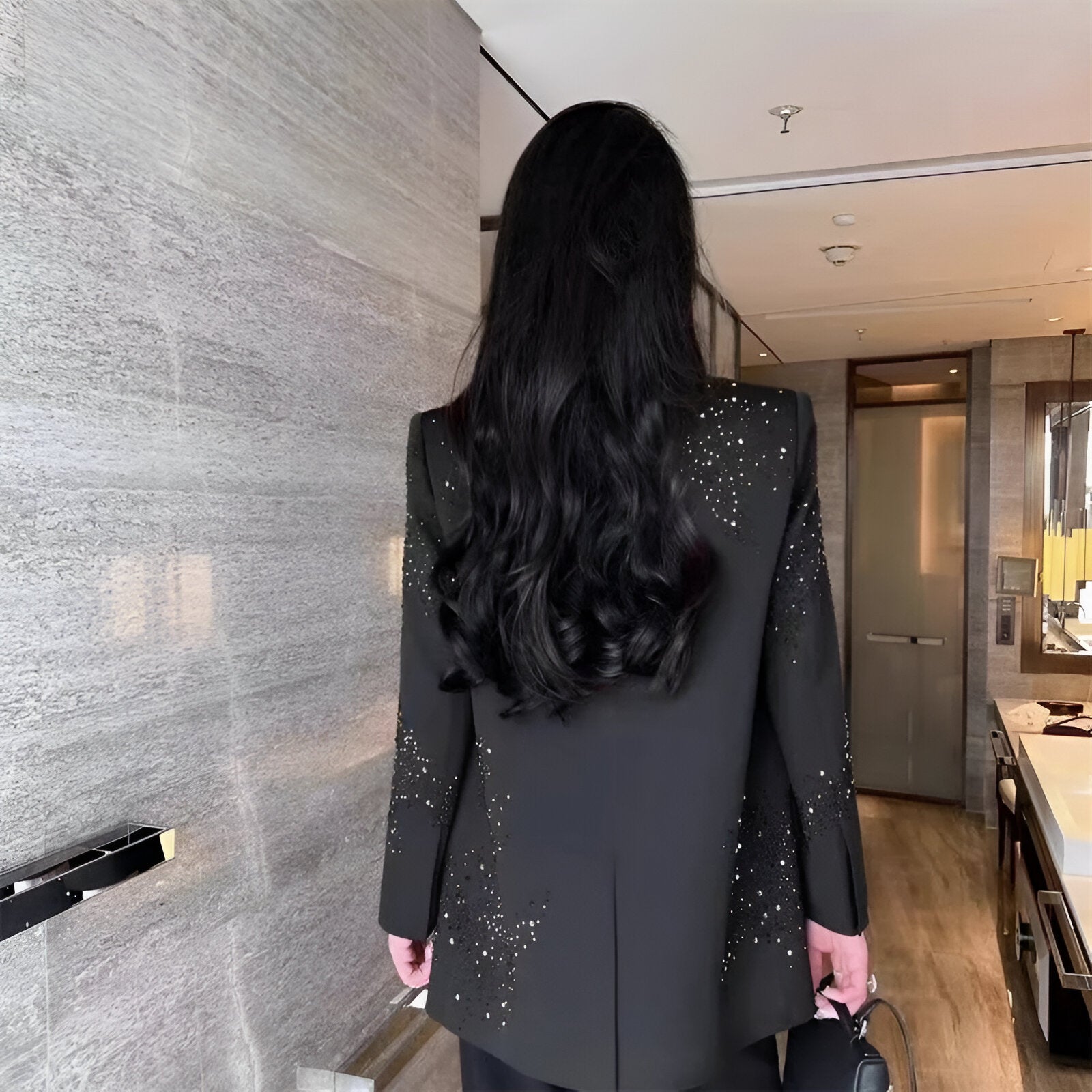Emanuelle | Funkelnde Eleganz – Strass Schwarzer Blazer